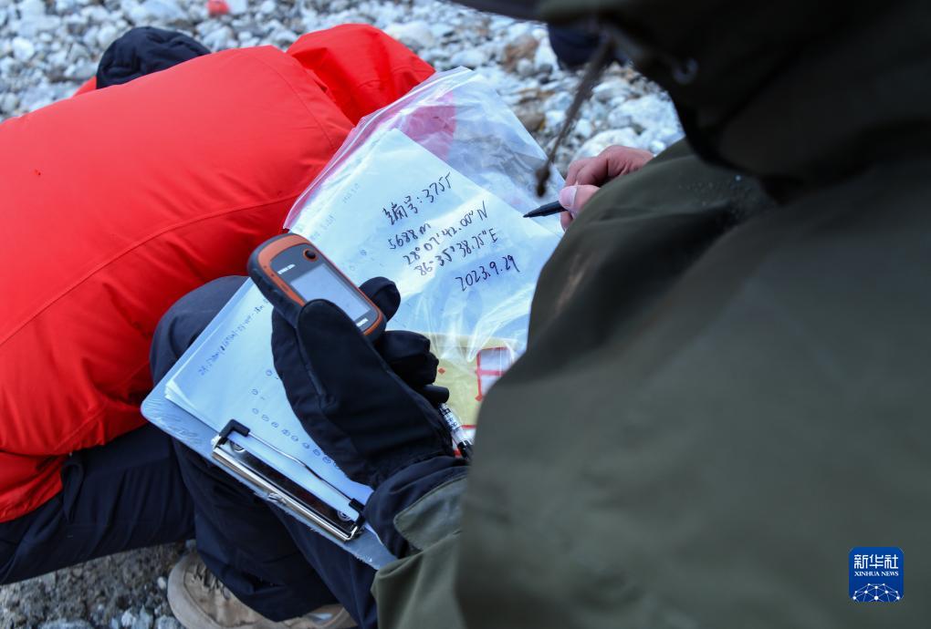 科考隊員記錄采集到的植物樣本信息(9月29日攝)。