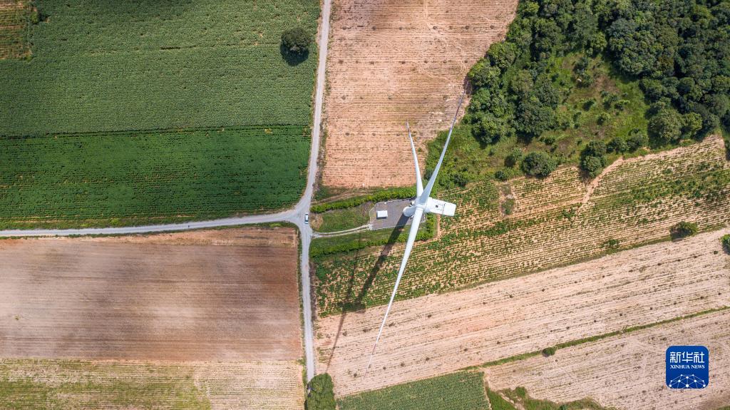 這是10月5日在泰國猜也蓬府拍攝的由中國金風科技提供的風力發電機(無人機照片)。