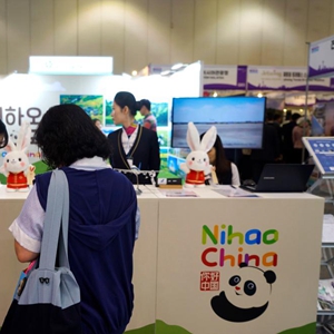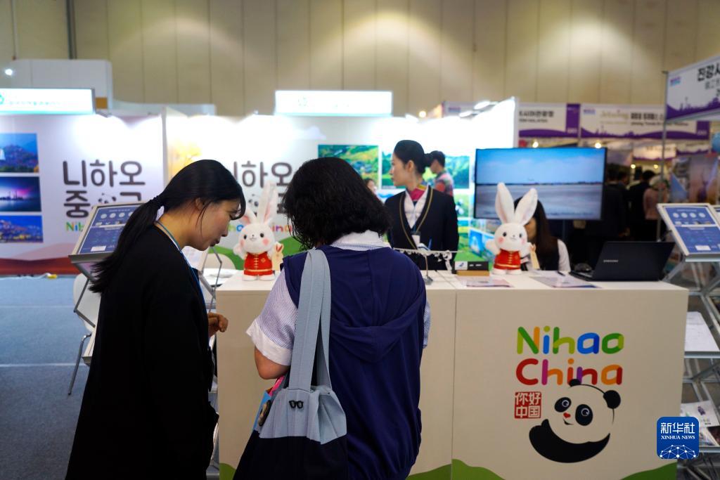 10月5日,人們在韓國釜山國際旅游展中國展位參觀。