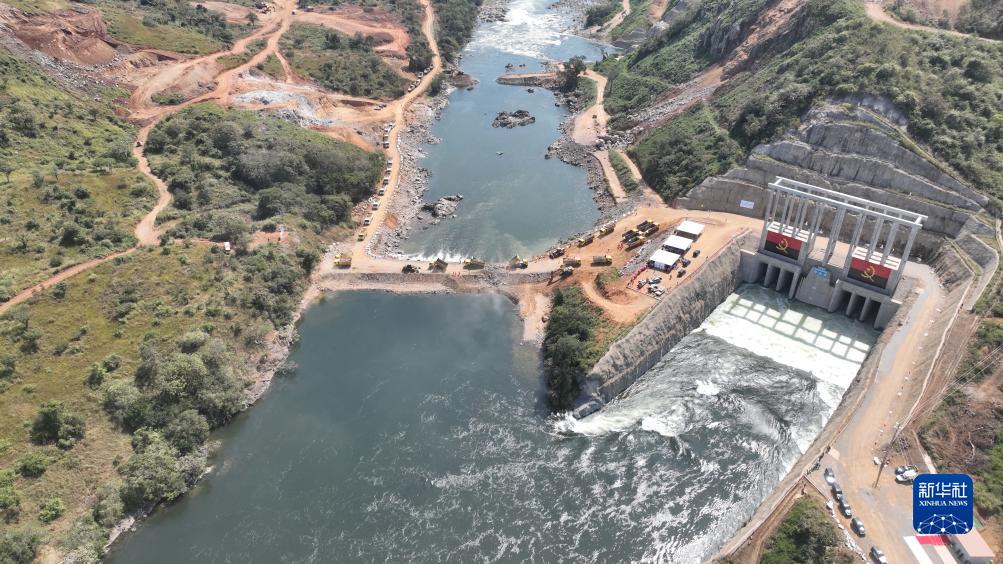這是2023年5月20日在安哥拉北寬扎省拍攝的凱凱水電站截流儀式現場(無人機照片)。凱凱水電站項目位于安哥拉最大河流寬扎河中段,計劃裝機容量2172兆瓦。水電站建成后,年平均發電量將達到8566吉瓦時,每年減少溫室氣體排放量約720萬噸,兼具調峰防洪功能。