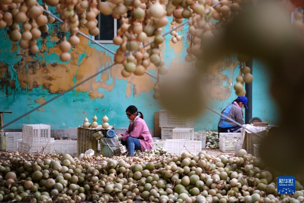 10月5日,河北省邢臺市信都區會寧鎮張爾莊村村民在加工葫蘆。