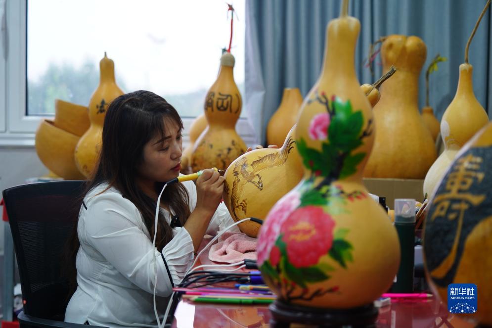 金秋時節,河北省邢臺市信都區會寧鎮張爾莊村的千畝葫蘆園進入收獲季。形態各異的葫蘆經過磨皮、晾曬和加工等程序進入葫蘆雕刻工藝室,變身精美的藝術品。近年來,張爾莊村打造以葫蘆種植、休閑觀賞、藝術雕刻為主的農業文化旅游融合項目,有效帶動村民在家門口實現增收。