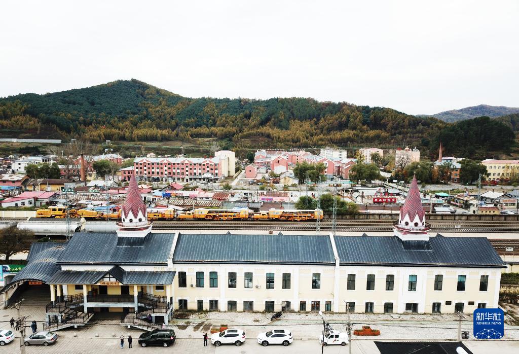 這是10月3日拍攝的擁有百年歷史的橫道河子火車站(無人機照片)。
