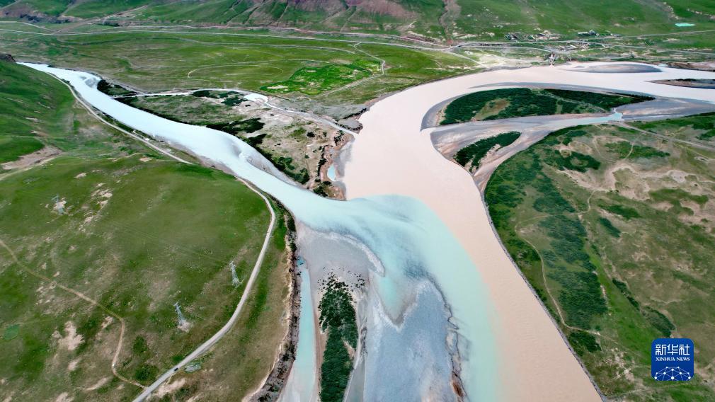 通天河支流聶恰曲的辮狀河道(2023年7月25日攝,無人機照片)。辮狀河流是一類由多個不規則沙洲分割而形成的淺水多汊道系統。長江正源沱沱河、北源楚瑪爾河下游、南源當曲下游及其支流布曲、尕爾曲,以及長江干流通天河上游河段,都以辮狀河道為主,組成了一個龐大的高原辮狀河群。