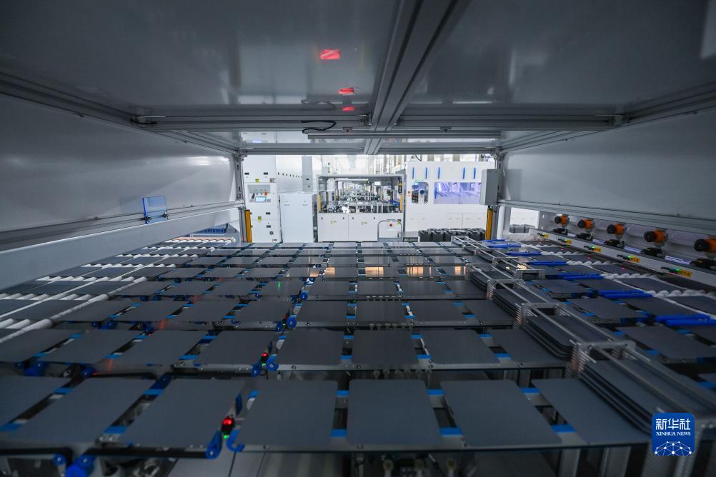 這是中國浙江東陽橫店集團東磁股份有限公司的光伏組件數字化生產車間(4月18日攝)。