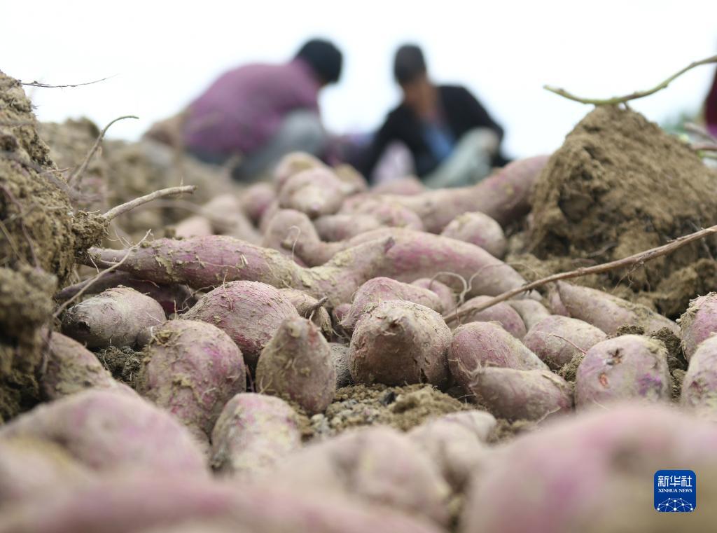 10月7日,在湖南省永州市道縣祥霖鋪鎮洞尾村,農民收獲紅薯。