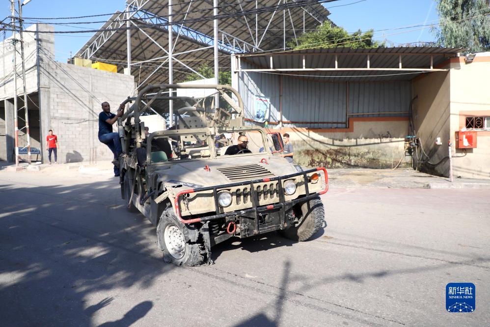 10月7日,在加沙城,巴勒斯坦人駕駛一輛以色列軍用車輛。
