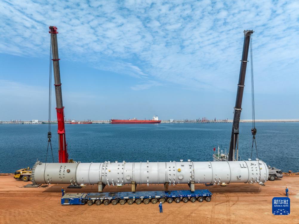 10月7日,在山東港口煙臺港西港區,一件171噸重的設備被吊裝上岸(無人機照片)。