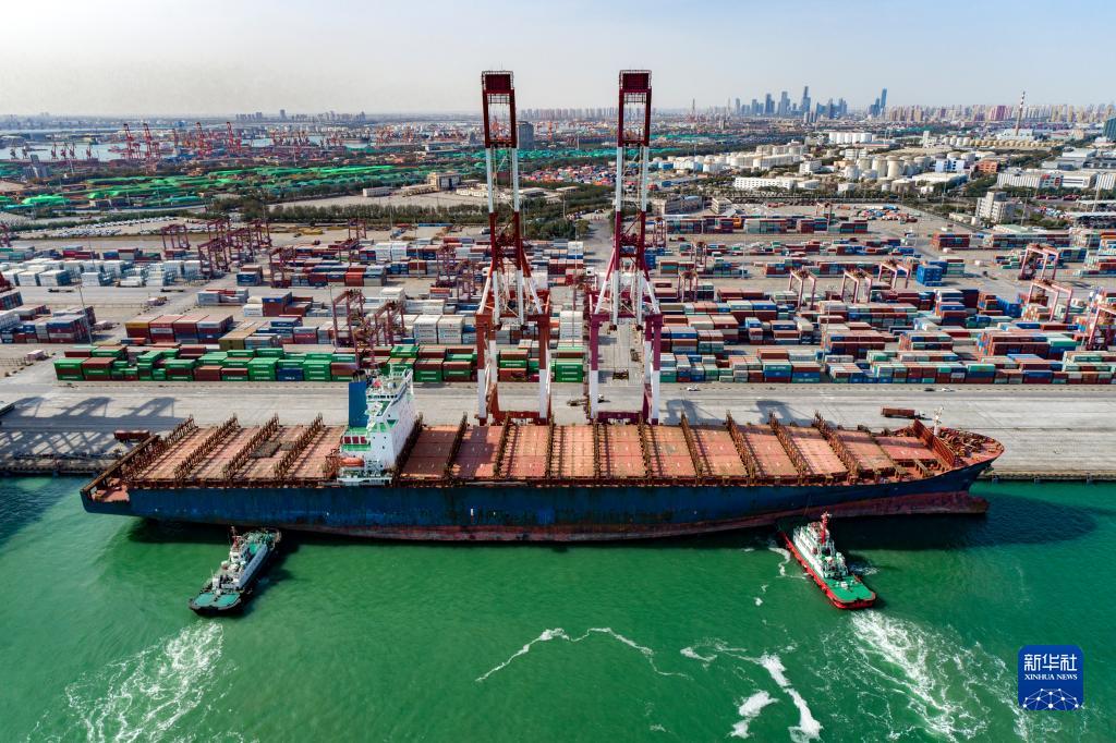 一艘貨輪??刻旖蚋郏?020年10月27日攝,無人機照片)。