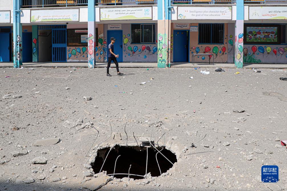 這是10月8日在加沙城一所學校拍攝的以色列空襲對地面造成的破壞。