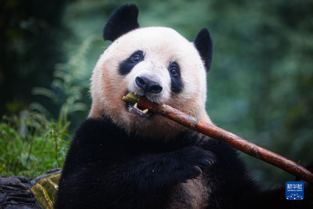10月8日,大熊貓“香香”在中國大熊貓保護研究中心雅安碧峰峽基地吃竹筍。