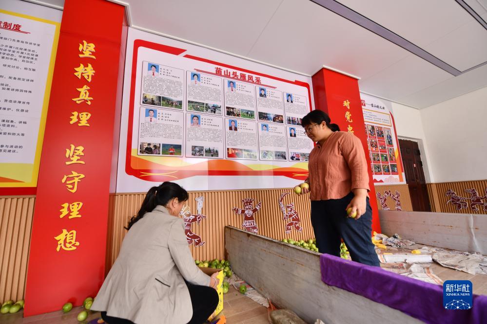 楊寧(右)和同事在打包百香果,準備通過快遞發貨(10月8日攝)。新華社記者 黃孝邦 攝
