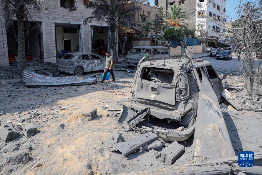 這是10月8日在加沙城拍攝的以色列空襲后被毀壞的車輛。