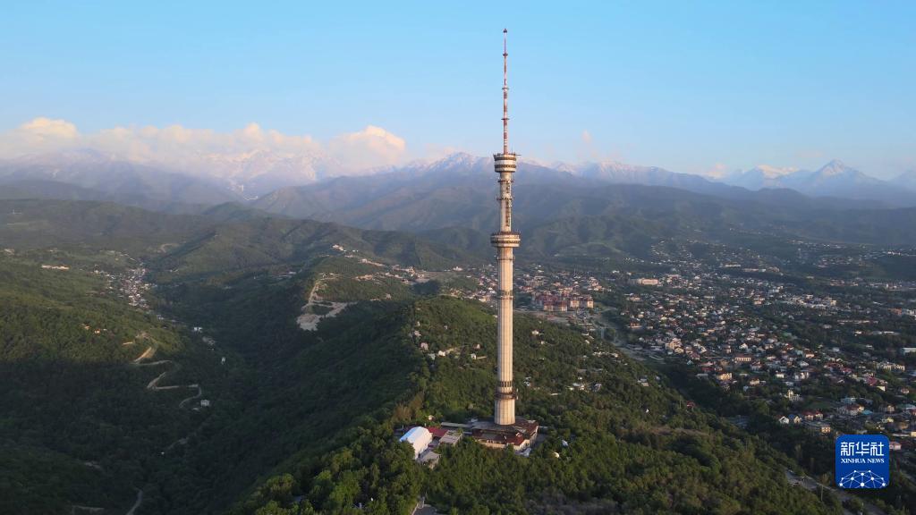 這是5月10日拍攝的哈薩克斯坦阿拉木圖科克托別電視塔(無人機照片)。