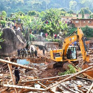 10月9日,人們在喀麥隆雅溫得山體滑坡災害現場開展搜救工作。