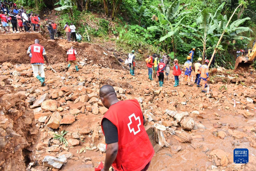 10月9日,人們在喀麥隆雅溫得山體滑坡災害現場開展搜救工作。