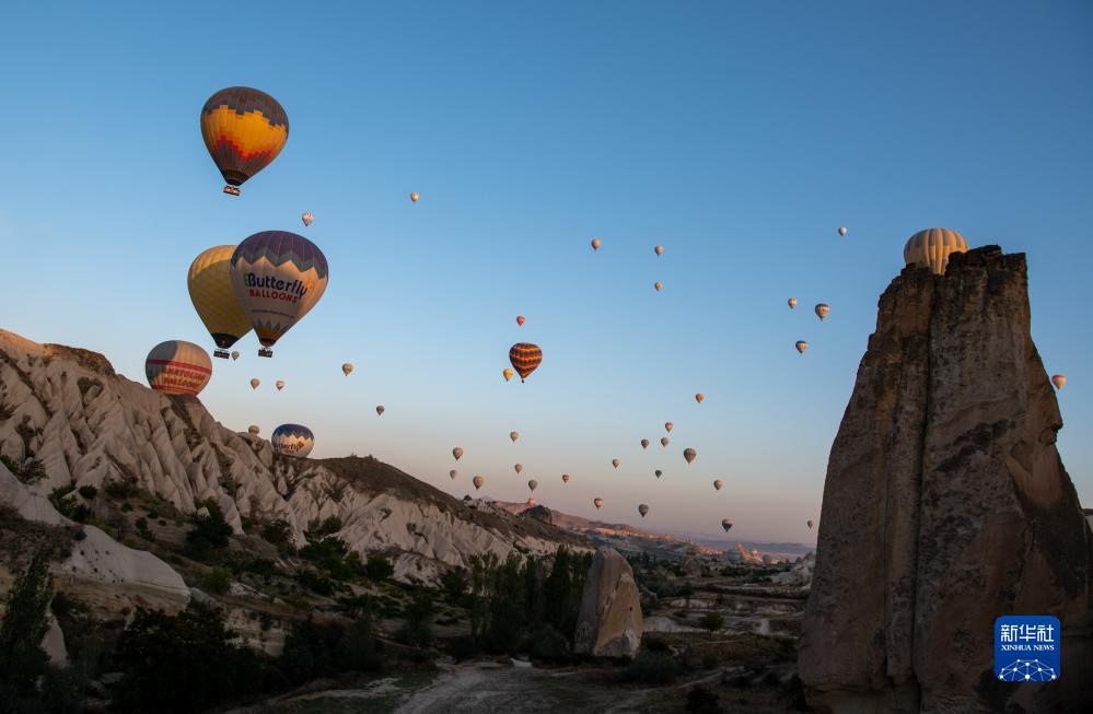 這是10月8日在土耳其卡帕多基亞拍攝的熱氣球。