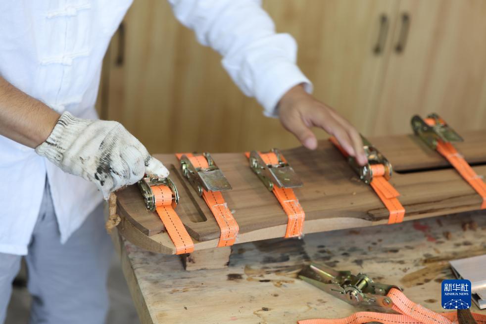 10月9日,河南省蘭考縣堌陽鎮善斫琴社的斫琴師徐冰在制作古琴。