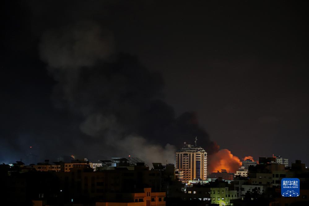 這是10月9日晚在加沙城拍攝的以色列軍隊空襲產生的濃煙。