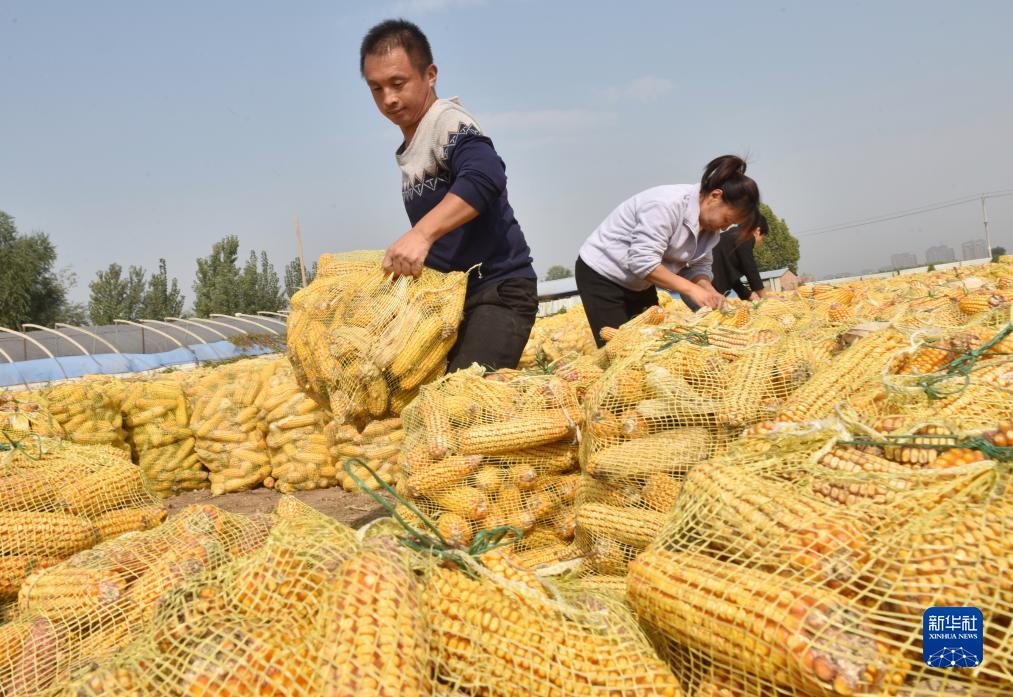 金秋時節,河北各地秋糧進入大面積收獲期,農民利用晴好天氣開展秋糧晾曬、收儲等工作,確保秋糧入倉。
