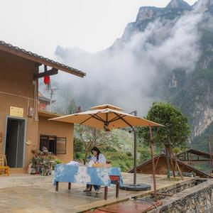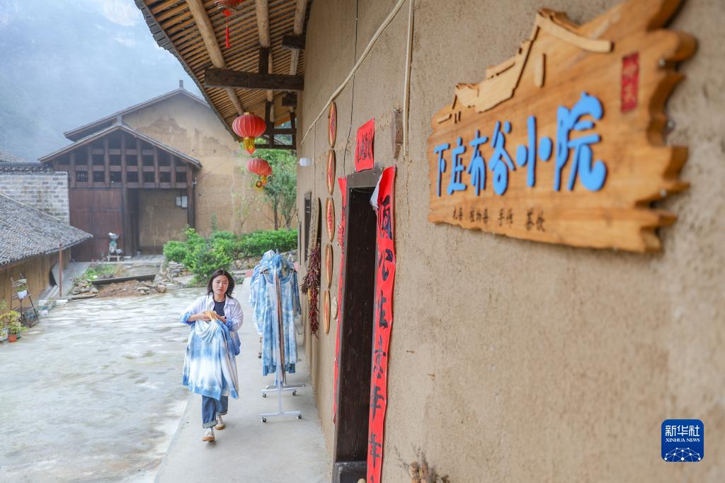10月10日,在重慶市巫山縣竹賢鄉下莊村,袁孝鑫將晾干的扎染產品取進屋內。