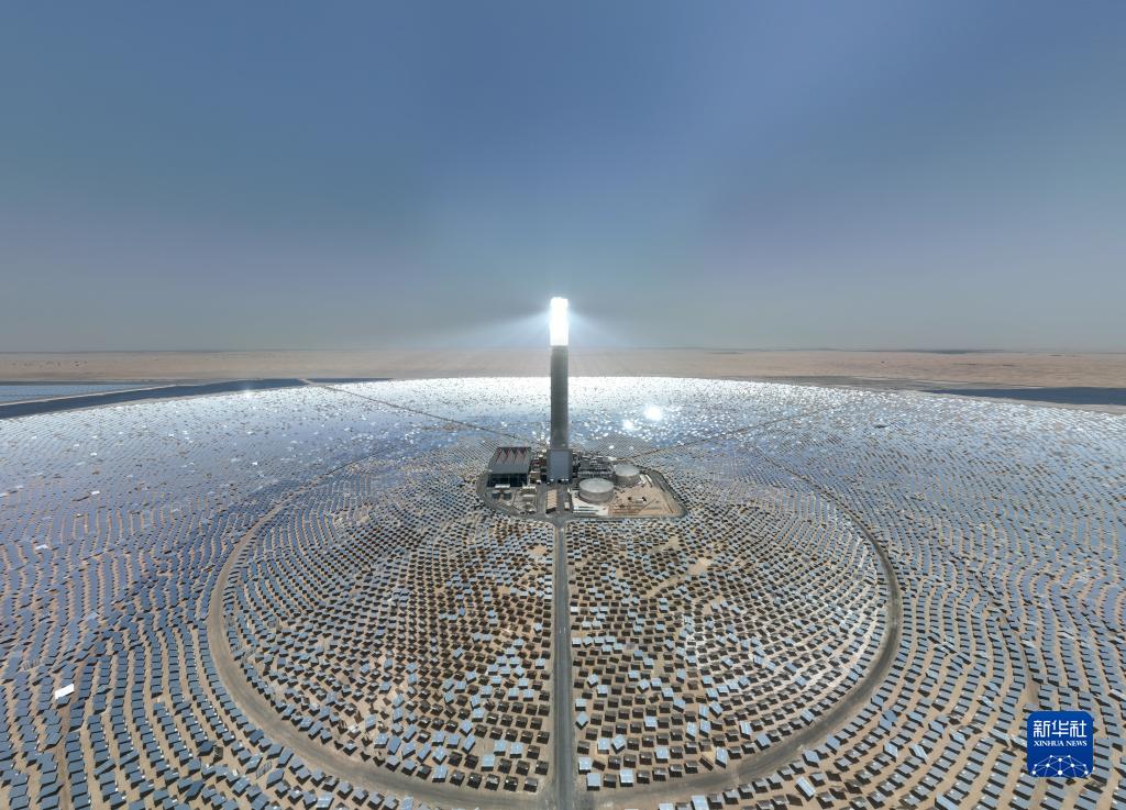 這是2022年8月15日在阿聯酋迪拜拍攝的上海電氣迪拜光熱光伏復合項目(無人機照片)。位于阿聯酋迪拜的700MW光熱和250MW光伏復合項目由上海電氣集團股份有限公司總包,裝機規模大、技術標準高,助力阿聯酋實現清潔能源目標。