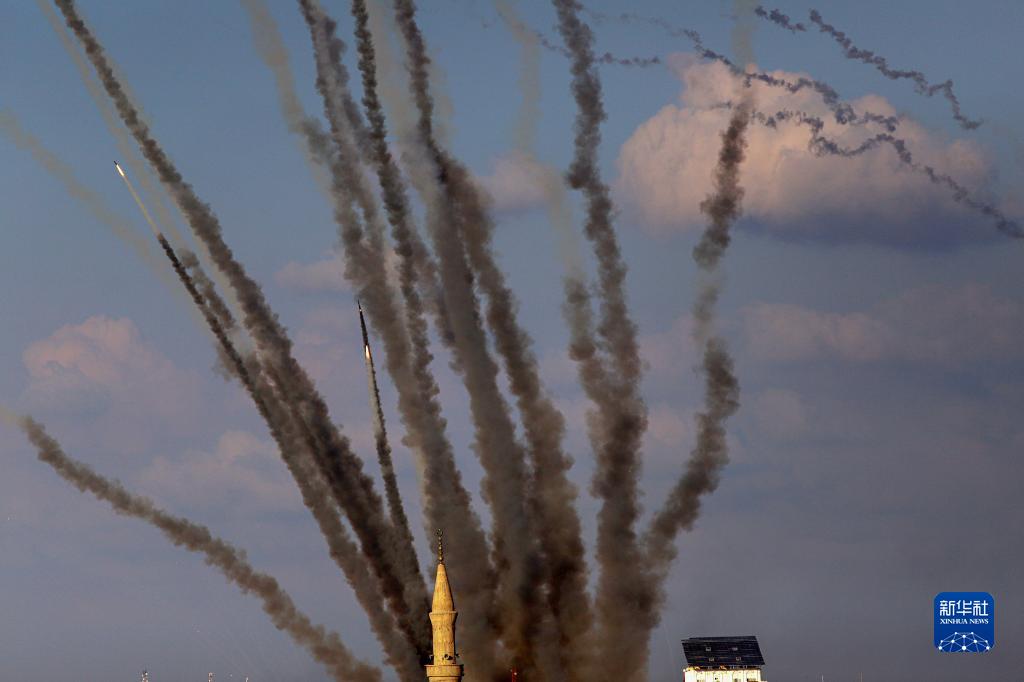 這是10月10日在加沙城拍攝的向以色列發射的火箭彈。