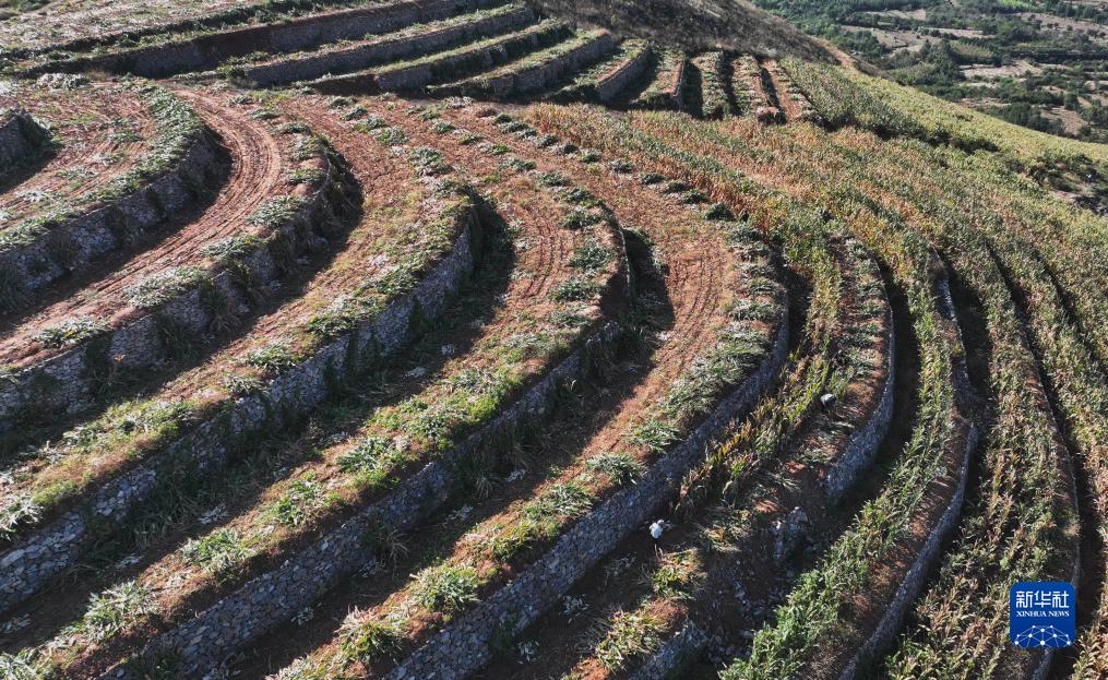 金秋時節,在河北省遵化市劉備寨鄉由丘陵坡地改造成的梯田中,農民搶抓農時收獲玉米等秋糧。近年來,遵化市大力實施土地整治工程,將淺山丘陵坡地和荒草地改造成保水保肥的水平梯田,促進農業增效、農民增收。