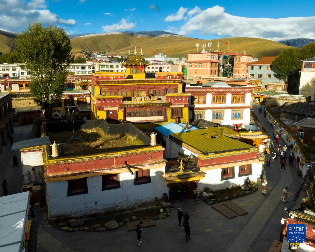 這是10月10日在四川甘孜藏族自治州理塘縣拍攝的勒通古鎮仁康古屋(無人機照片)。