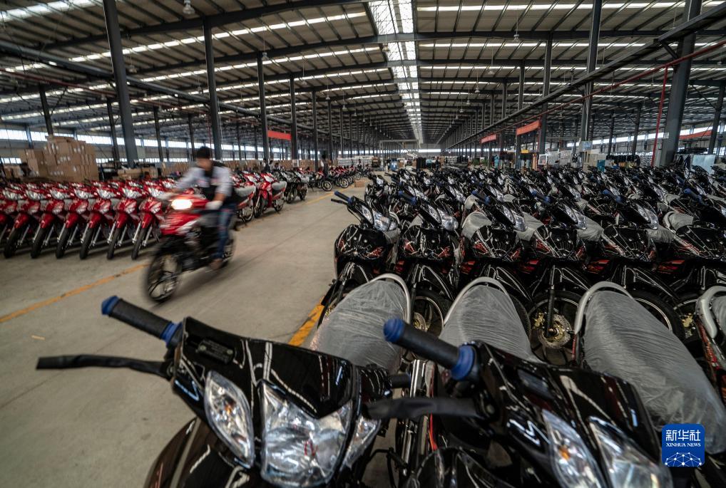 中國(云南)自由貿易試驗區德宏片區一家摩托產業園生產車間生產的摩托車下線(2019年11月4日攝)。中國(云南)自由貿易試驗區德宏片區重點發展跨境電商、跨境產能合作、跨境金融等產業,打造沿邊開放先行區、中緬經濟走廊的門戶樞紐。