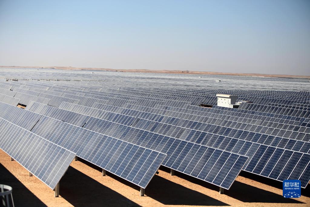 這是2019年3月18日在埃及南部阿斯旺拍攝的特變電工承建的本班光伏產業園。
