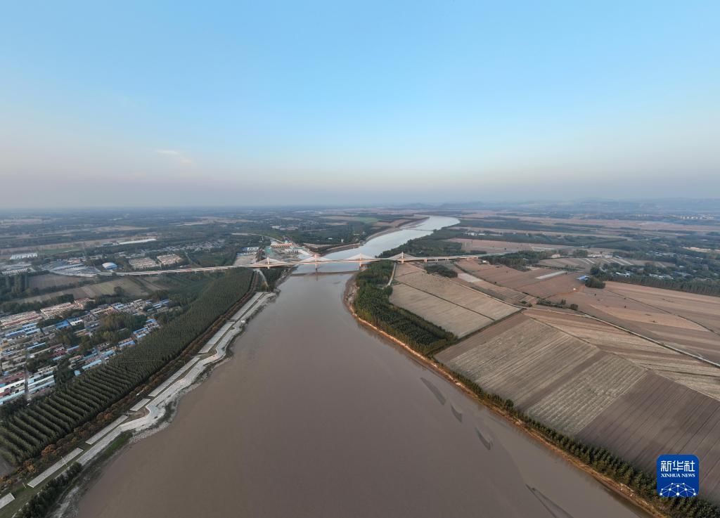 山東聊城位山灌區的黃河位山閘(10月10日攝,無人機照片)。
