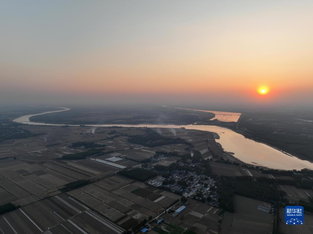 山東聊城位山灌區黃河位山閘附近景色(10月10日攝,無人機照片)。