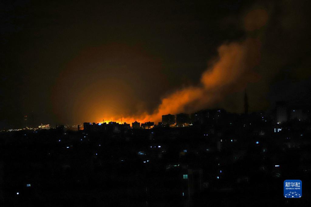 10月11日凌晨,加沙城的建筑遭以色列空襲后升起濃煙。