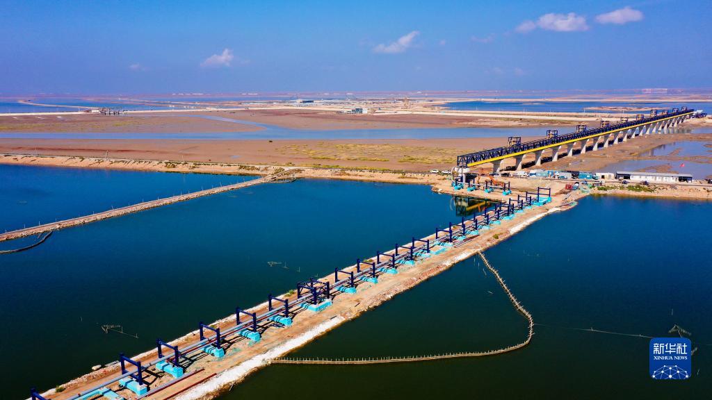 這是濱州市濱州港海港港區管廊支架(一期)工程項目(10月11日攝,無人機照片)。