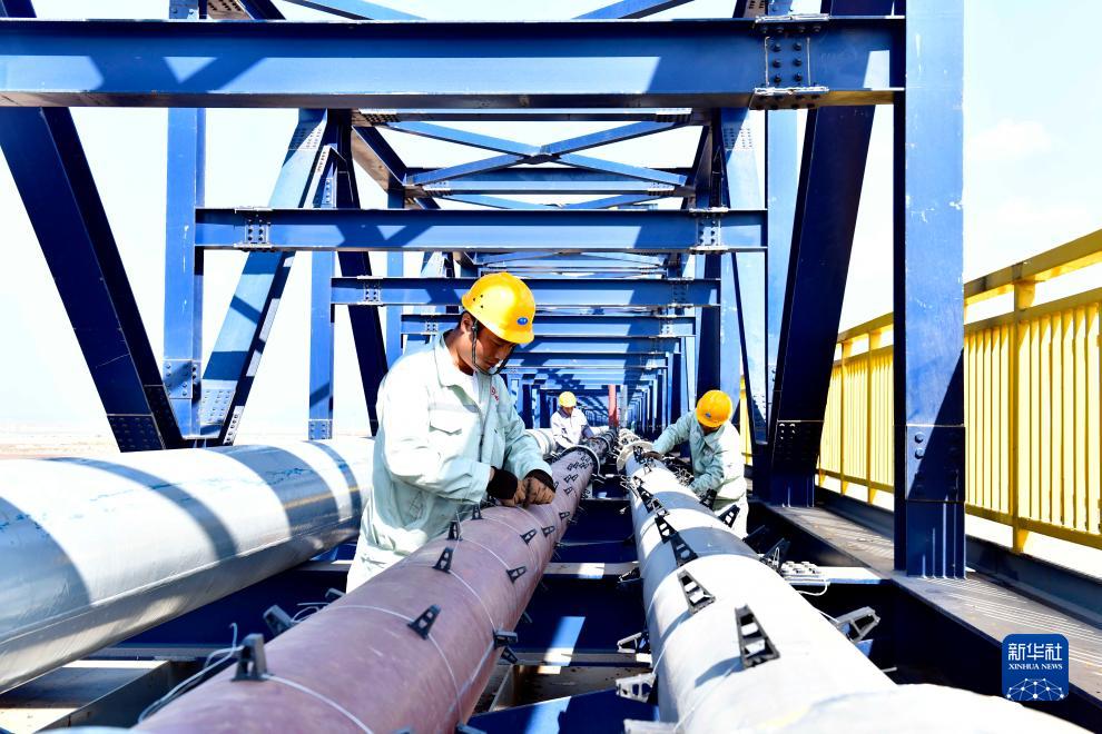 10月11日,在濱州市濱州港海港港區管廊支架(一期)工程項目,工作人員在施工。