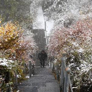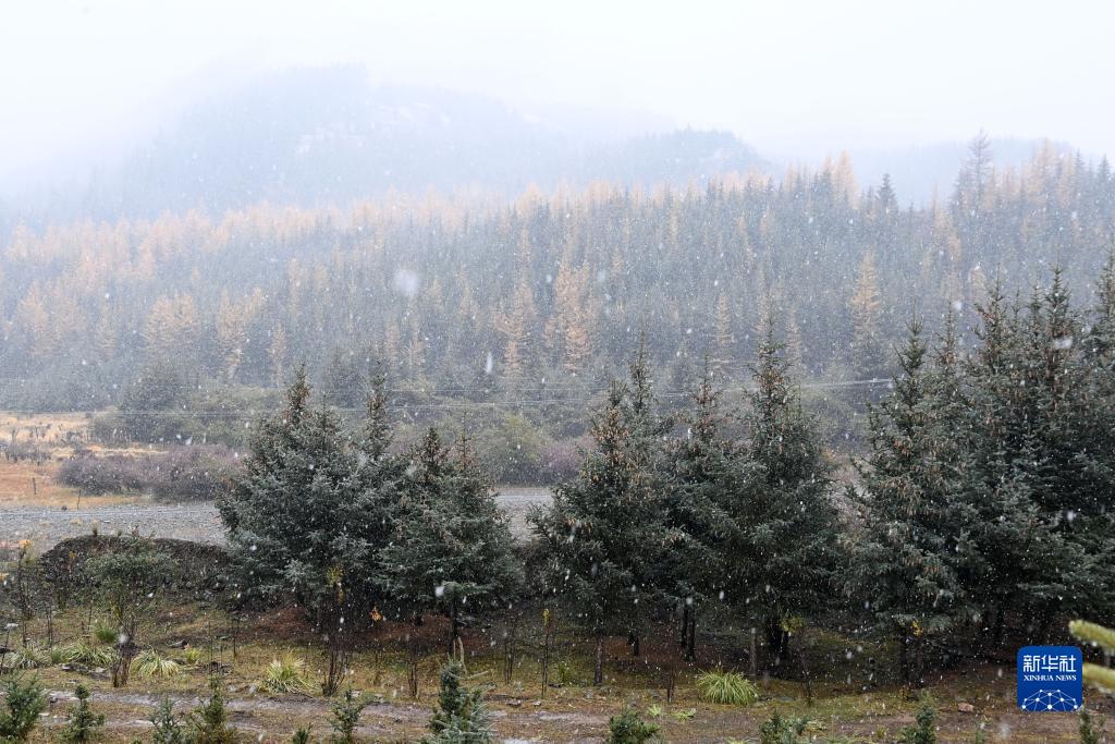 金秋時節,甘肅省張掖市肅南裕固族自治縣境內的祁連山脈迎來一場降雪,云杉翠柏與皚皚白雪相映成趣,美不勝收。