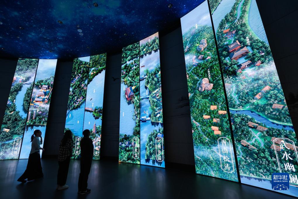 10月11日,游客在大運河數字詩路e站的嘉禾八景展廳內參觀。