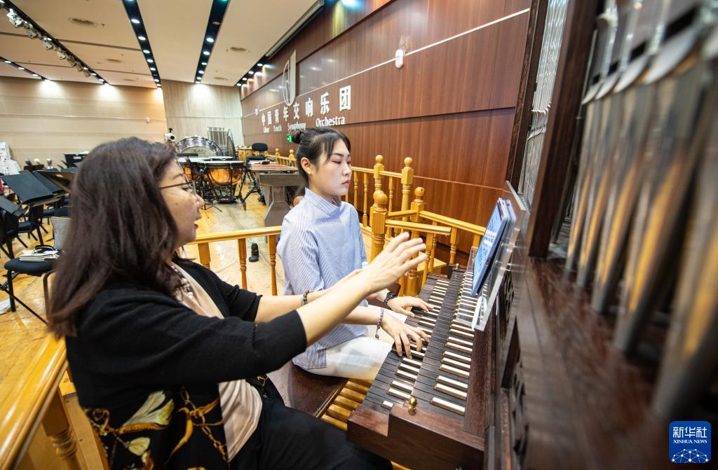 9月14日,在位于北京的中央音樂學院,沈凡秀教授(左)指導管風琴專業學生練習莫扎特的《F小調幻想曲 K.608》。