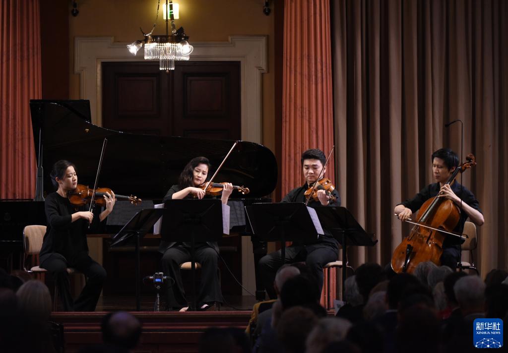 8月10日,在奧地利維也納,來自中央音樂學院的演奏者在“聽見當代中國”——中國當代作曲家室內樂作品音樂會演奏曲目《風信子》。