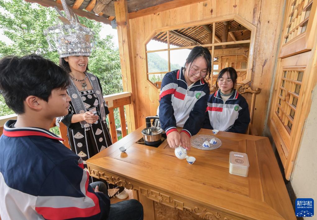 10月10日,重慶梁平職教中心的學生們來到橋頭鎮的陶然居瓦屋小寨,在陶然半山民宿內學習茶藝技術。
