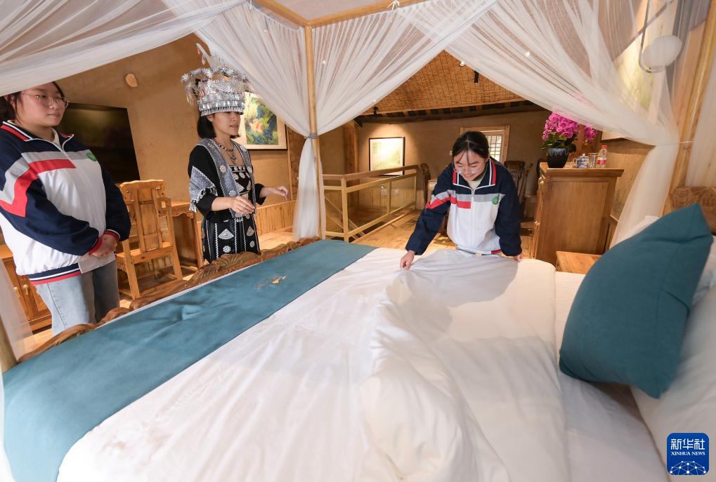 10月10日,重慶梁平職教中心的學生們來到橋頭鎮的陶然居瓦屋小寨,在陶然半山民宿內進行專業實踐。