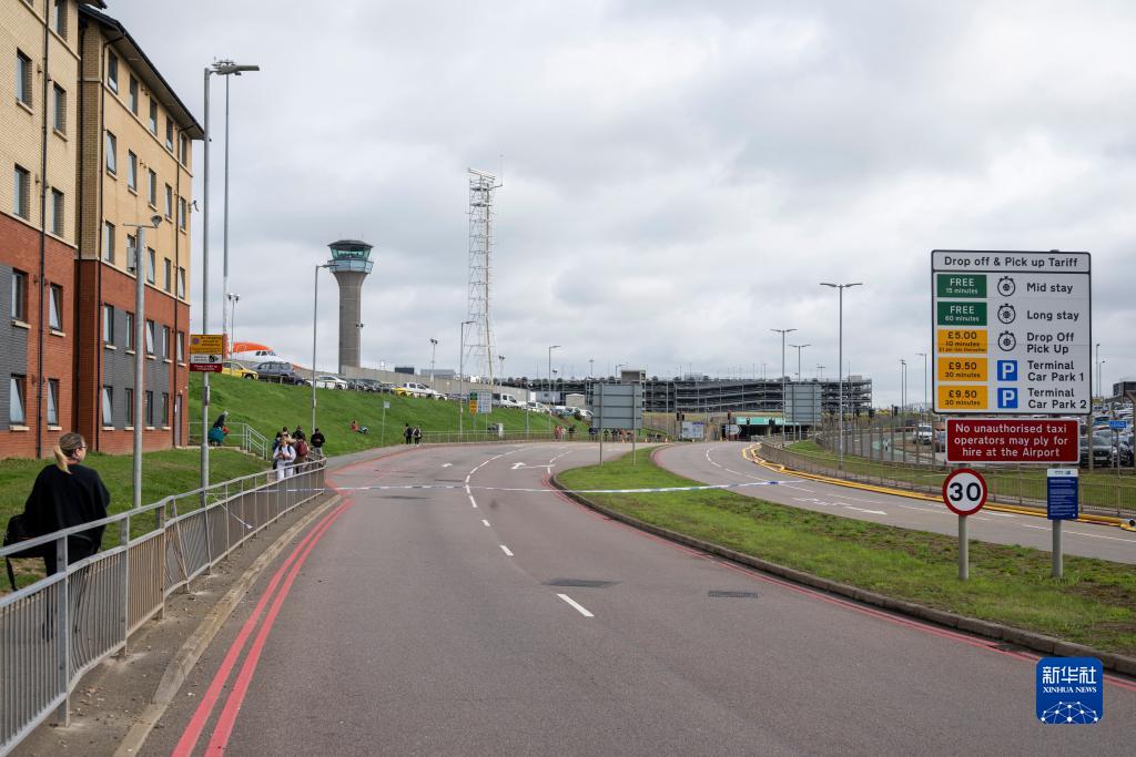 這是10月11日在英國倫敦盧頓機場外拍攝的封閉道路。