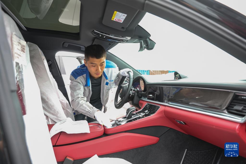 10月11日,在位于重慶國際物流樞紐園區的重慶汽車整車進口口岸,工作人員對進口整車進行檢查。