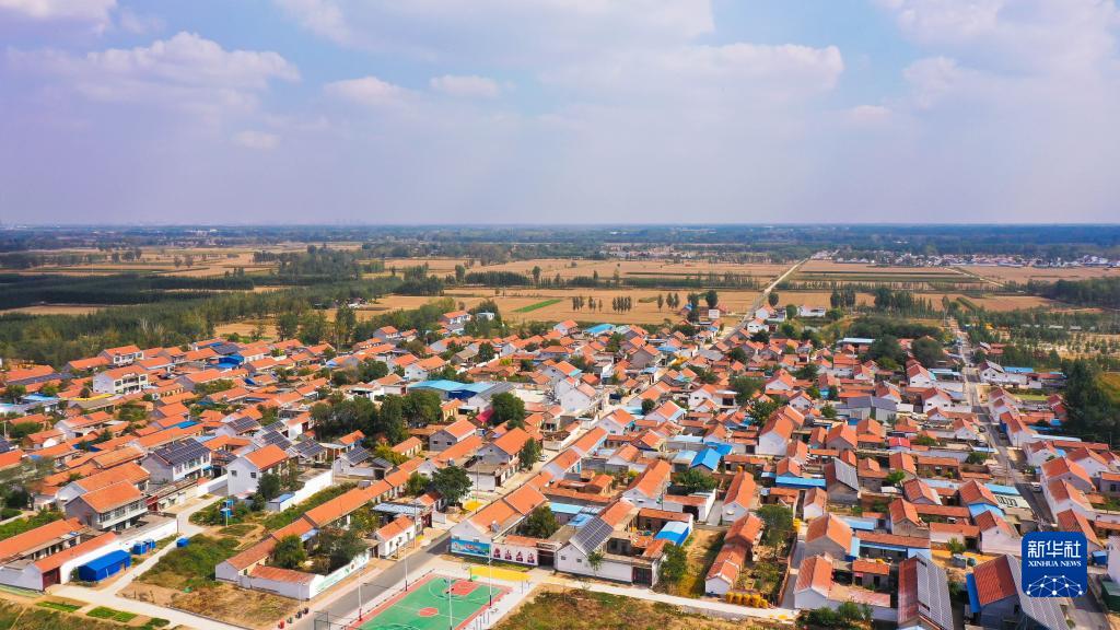 10月11日拍攝的山東省惠民縣清河鎮牛王店村村容村貌提升后的景象(10月11日攝,無人機照片)。