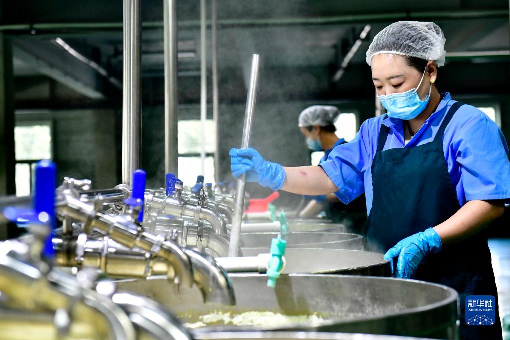 10月11日,山東省惠民縣東方豆制品有限公司的工作人員在加工豆制品。