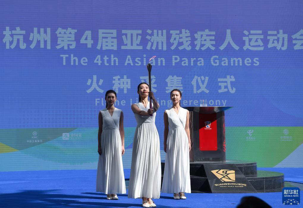 當日,杭州第四屆亞洲殘疾人運動會火種在首屆亞殘運會的舉辦地廣州完成采集。