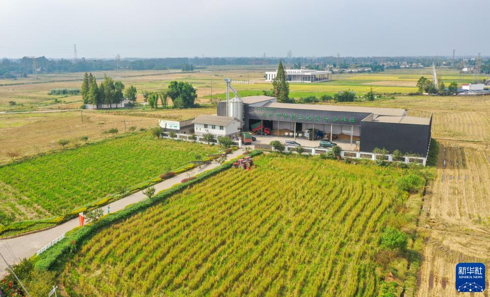 10月10日在成都崇州市隆興鎮拍攝的王伶俐管理的楊柳土地股份合作社(無人機照片)。