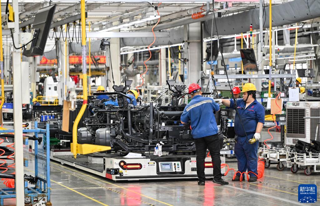 9月26日在位于重慶市兩江新區的上汽紅巖汽車有限公司總裝車間拍攝的生產作業現場。