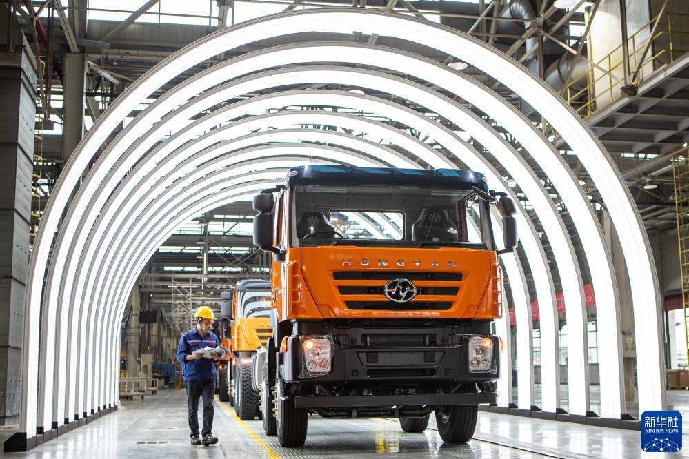 在位于重慶市兩江新區的上汽紅巖汽車有限公司,下線駕駛員在總裝車間進行整車下線前的檢查(9月26日攝)。